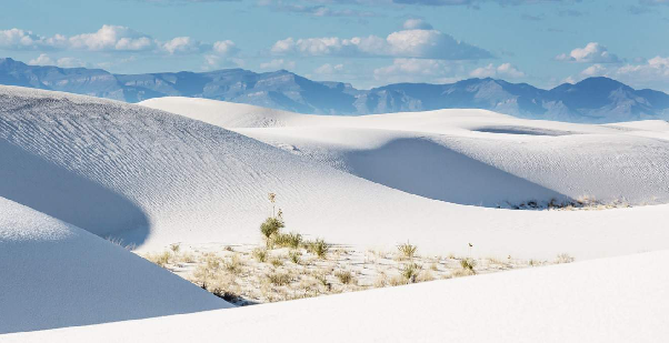 White Sands è un’area protetta, nel New Mexico, che offre paesaggi naturali unici: qui si estendono un’infinità di dune di sabbia bianca, formate da cristalli di gesso che creano un’atmosfera quasi lunare.