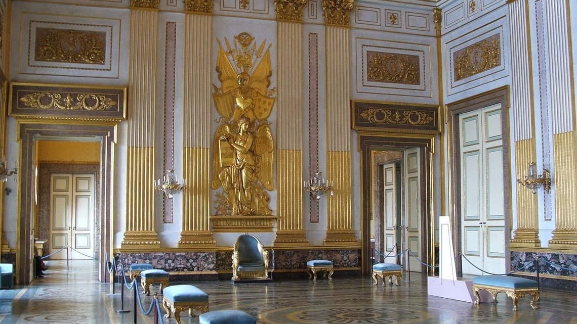La Reggia ha una superficie di 47.000 metri quadri, è suddivisa in cinque piani e ha quattro cortili interni. Il maestoso scalone d’onore dà accesso alla Cappella Palatina, all’appartamento storico, al teatro di corte e alla Quadreria. Le 1200 stanze hanno sfarzosi interni tardobarocchi. Spicca fra tutte la Sala del Trono, rivestita di stucchi e fregi dorati.