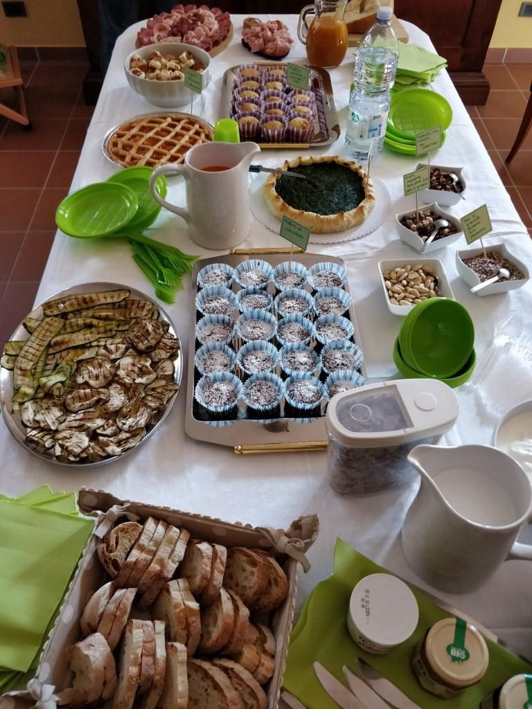 - pane e nutella / pane e marmellata (a disposizione degli ospiti, con coltelli e cucchiai da usare all’occorrenza)